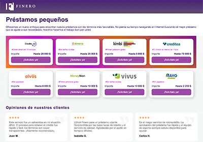 Finero ofrece préstamos flexibles que pueden ser devueltos en un plazo de 61 a 90 días, CAT mínima es de 0% y la máxima es de 36%. Por ejemplo, para un préstamo de $1000 a devolver en 67 días, los costos serán de $0 pesos, el importe total a devolver será de $1000 con una CAT de 0%. Es importante tener en cuenta que esta información no constituye una oferta de contrato. Se trata simplemente de un ejemplo representativo de un préstamo, y los datos son puramente informativos. El solicitante recibirá las condiciones exactas y tasas de interés del proveedor de préstamos específico después de completar la solicitud sin compromiso. Siempre es recomendable solicitar información sobre la tasa antes de firmar el contrato.